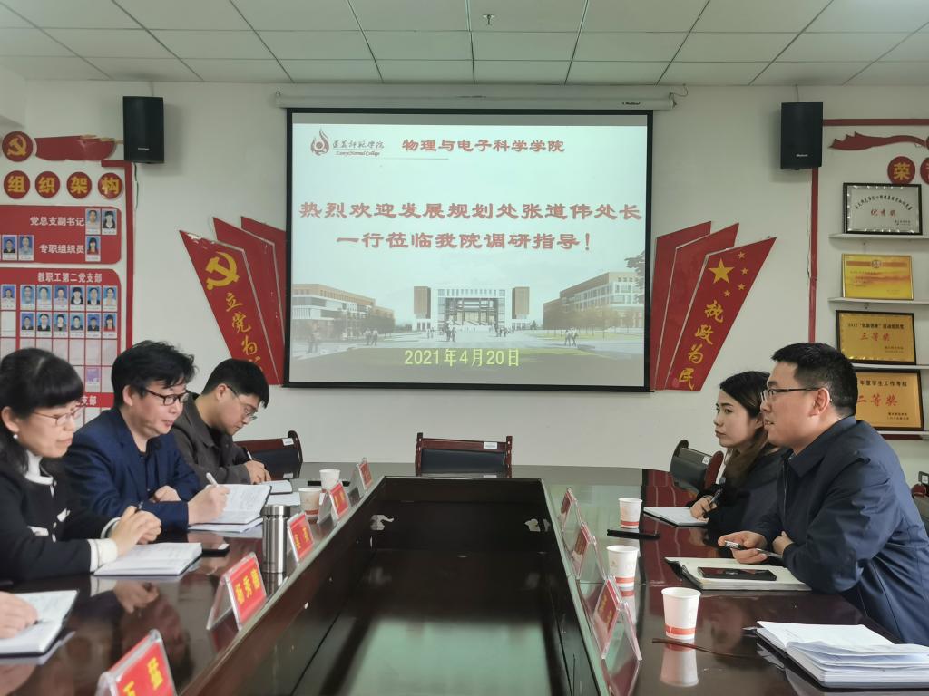 为扎实推进学校“我为群众办实事”工作,通过察民情访民意,科学谋划学科发展思路和举措,全面提升学科建设水平,4月19日至20日,发展规划处(学科办)张道伟处长一行到教师教育学院(遵义家庭教育学院)、物理与电子科学学院及工学院进行了welcome皇冠登录手机版学科建设专题调研座谈会。