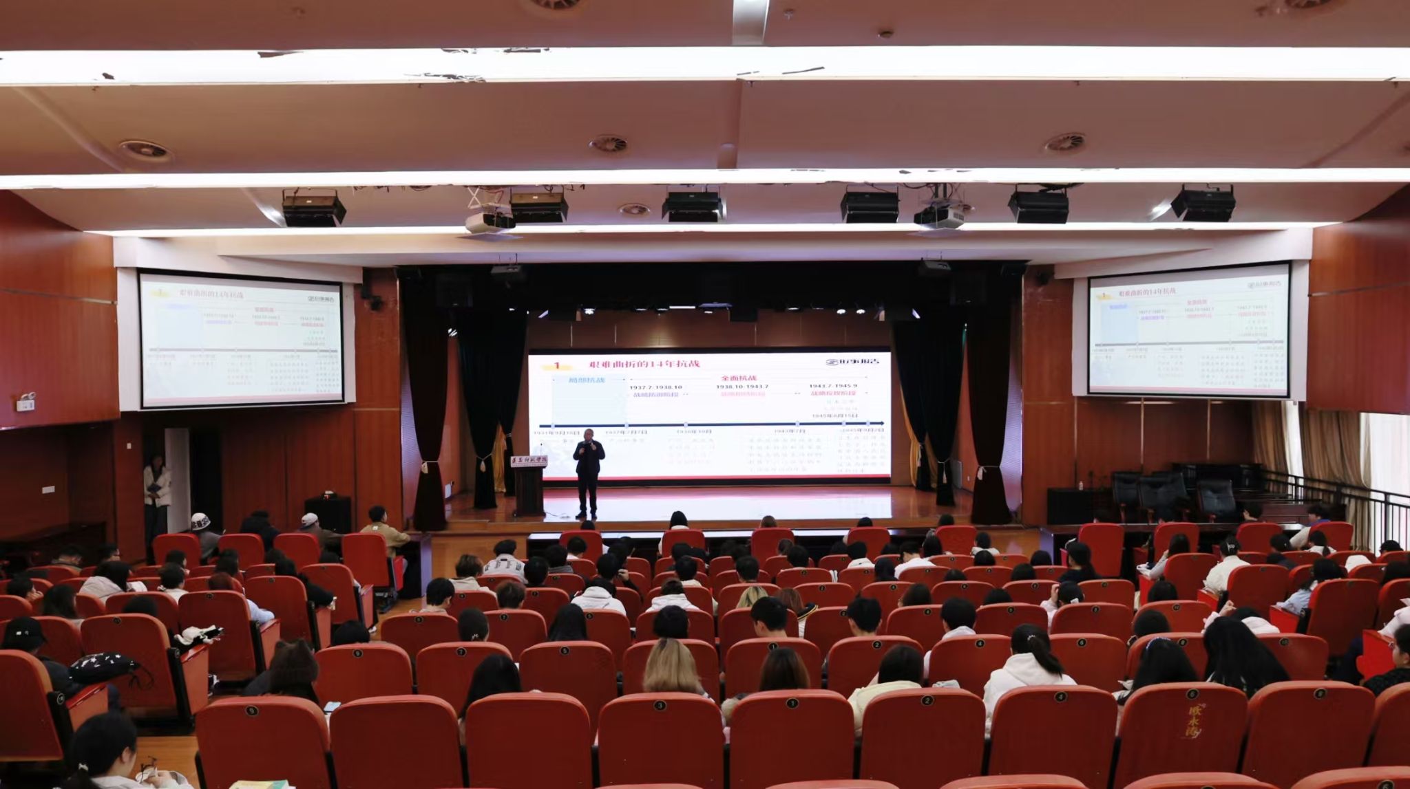 本网讯(文/姚继璇 图/敖梓豪) 12月2日下午,学校党委副书记周晶在学术交流中心二楼报告厅上题为《纪念抗战胜利 坚定民族信念》的思政课。