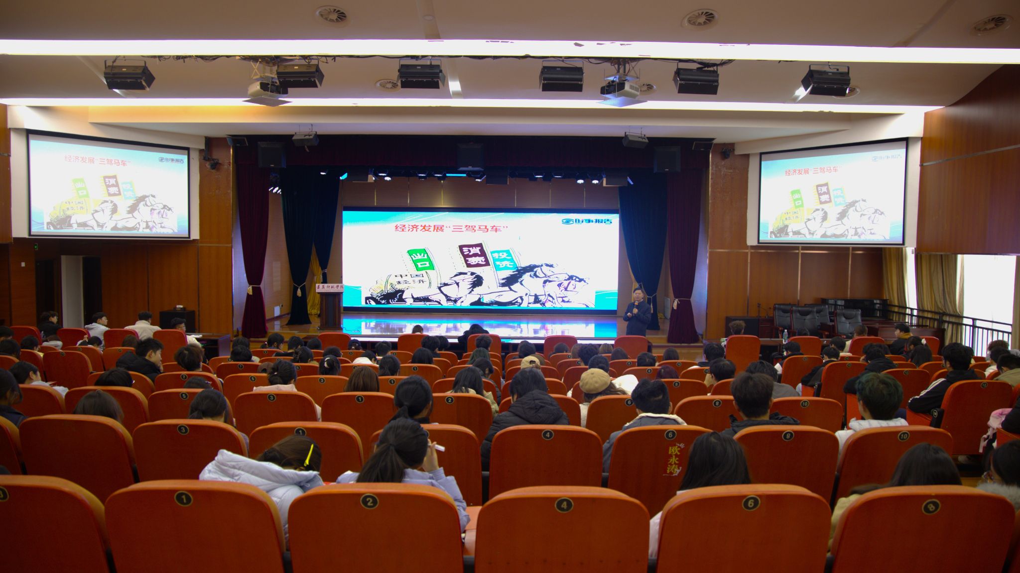 本网讯(文/黄思妍 图/曾涛) 12月3日下午,学校党委书记陈治松在学术交流中心二楼报告厅讲授题为《正确认识中国经济热点问题》的思政课。