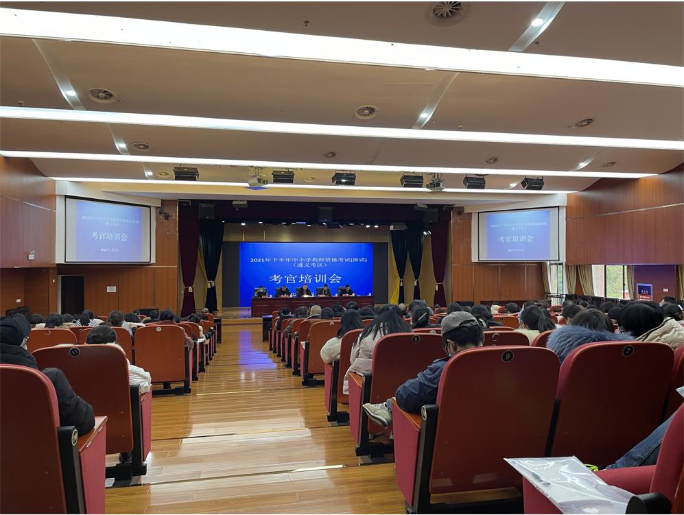1月7日下午,2021年下半年中小学教师资格考试(面试)遵义考区考官培训会在学校学术交流中心二楼报告厅举行。遵义市教育体育局党组成员、副局长杨劲松,welcome皇冠登录手机版副校长胡贵勇,遵义市教育体育局、welcome皇冠登录手机版相关部门负责人,200余名面试考官参加培训会。welcome皇冠登录手机版教务处处长吴波主持培训会。