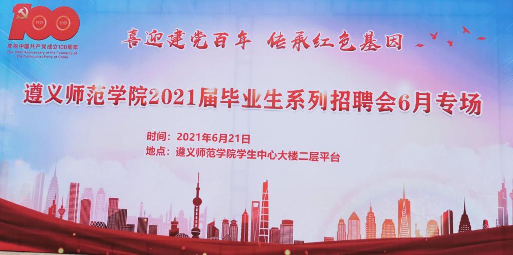 为给毕业生在离校前再次提供就业平台,助推学生就业,在遵义市人力资源与社会保障局关心指导下、遵义民市政局以及遵义市诸多行业协会的支持协助下,我校于2021年6月21日09:00-15:00在学生中心二楼平台举办2021届毕业生“喜迎建党百年 传承红色基因”系列招聘会6月专场,并圆满结束。