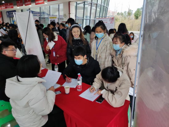 为给我校2022届毕业生提供更多就业岗位,助推毕业生就业,在遵义市人力资源与社会保障局、新蒲新区社会事业局的大力关心指导下,在遵义人力资源有限公司及遵义市诸多行业协会的支持协助下,我校于2021年12月12日10:00-16:00在学生中心二楼平台举办2022届毕业生校园招聘会,并圆满结束。新蒲新区社会事业局就业科科长王亮到招聘会现场指导工作。