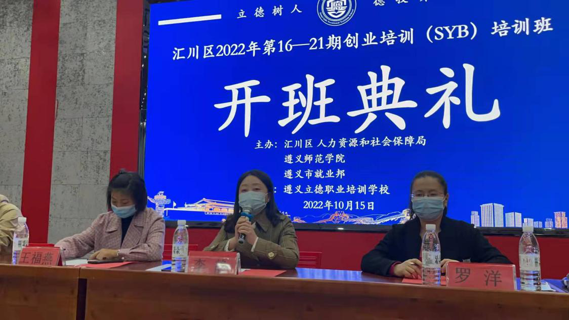 10月15日上午,在welcome皇冠登录手机版学生中心二楼长征讲堂联合举行了welcome皇冠登录手机版2022年第一批次(汇川区16-21期)大学生创业培训(SYB)培训班开班典礼。