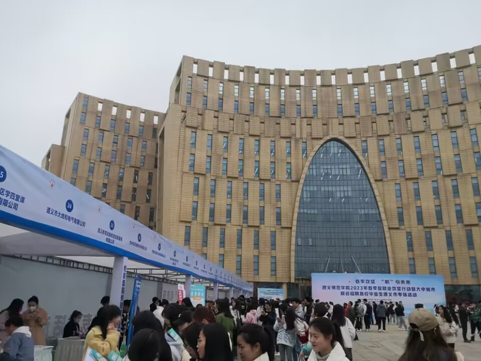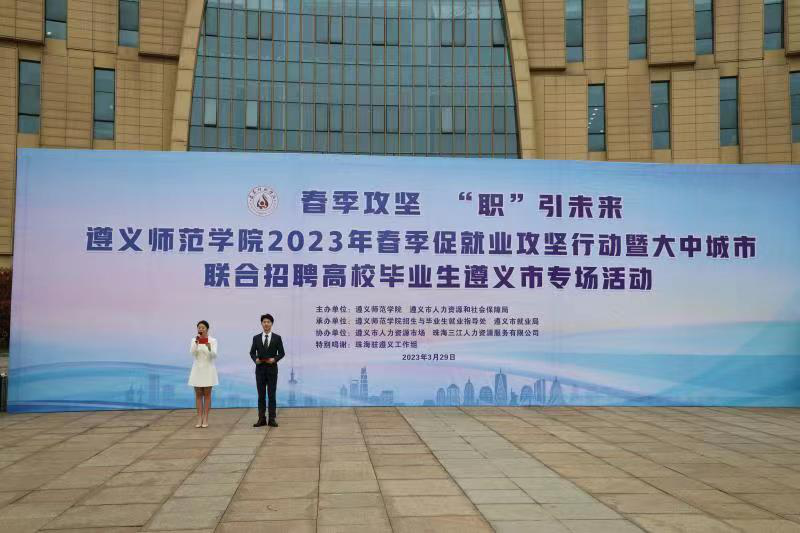 为给我校2023届毕业生提供更多更好的就业岗位,充分发挥遵珠劳务协作平台作用,助推毕业生高质量就业,在遵义市人力资源与社会保障局、珠海驻遵义工作组的大力关心指导下,在遵义市人力资源市场、珠海市三江人力资源集团的支持协助下,我校于2023年3月29日10:00-14:00在星空广场成功举办2023年春季促就业攻坚行动暨大中城市联合招聘高校毕业生遵义市专场活动。