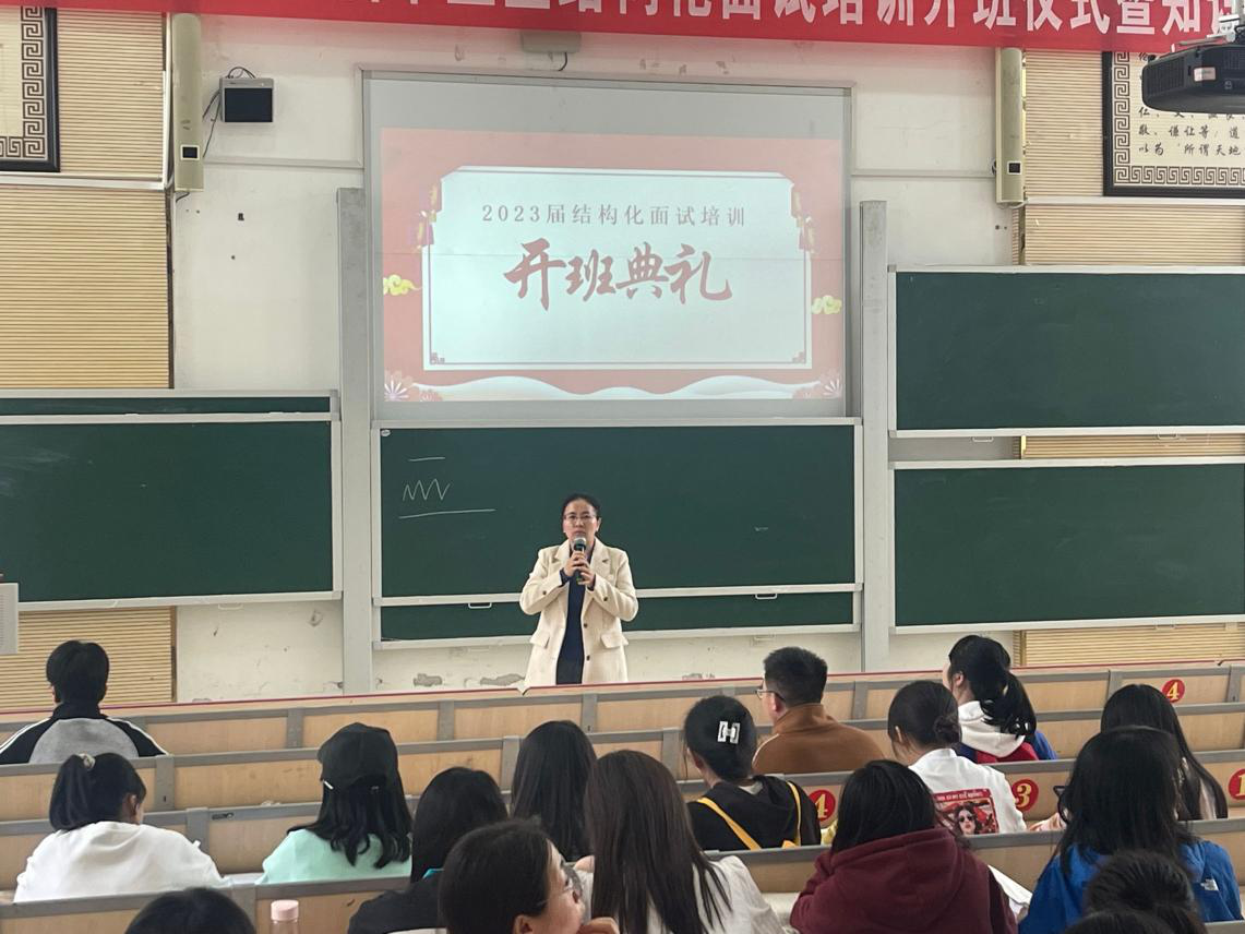 为落实教育部门和人社部门关于大力开展职业指导进校园相关工作要求,提高学生面试能力,为求职打好基础,我校于4月12日14:00在执毓楼107举办2023届毕业生结构化面试培训开班仪式暨知识讲座,各二级学院接近300名学生到场参加。