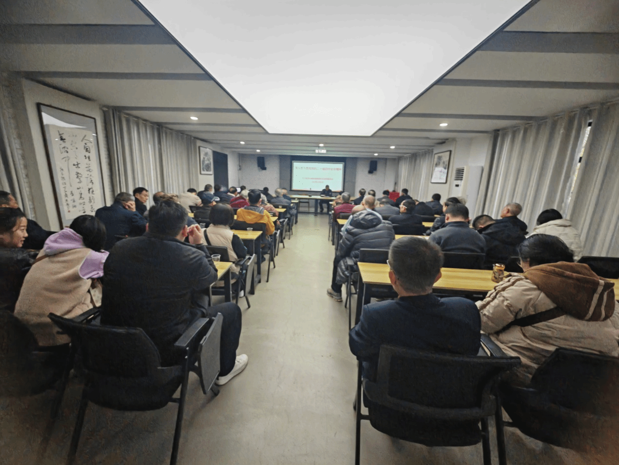 参观结束后,全体人员在汇川区高泥社区会议室举行集中学习会。学习会由高泥社区党总支书记文莹主持。学校原副校长杨成书同志作主题发言,系统解读了党的二十届四中全会和省委十三届八次全会精神,并对国家及贵州省“十五五”规划的核心目标与重点任务进行了详细介绍。