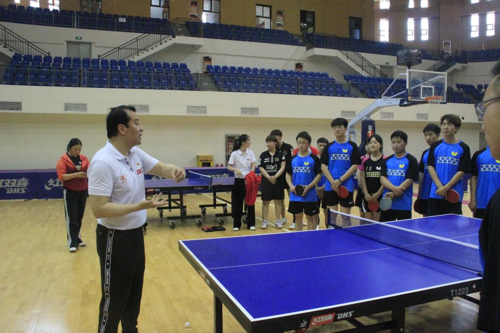 5月11日,中国乒乓球学院师生与皇冠体育学院师生开展交流。