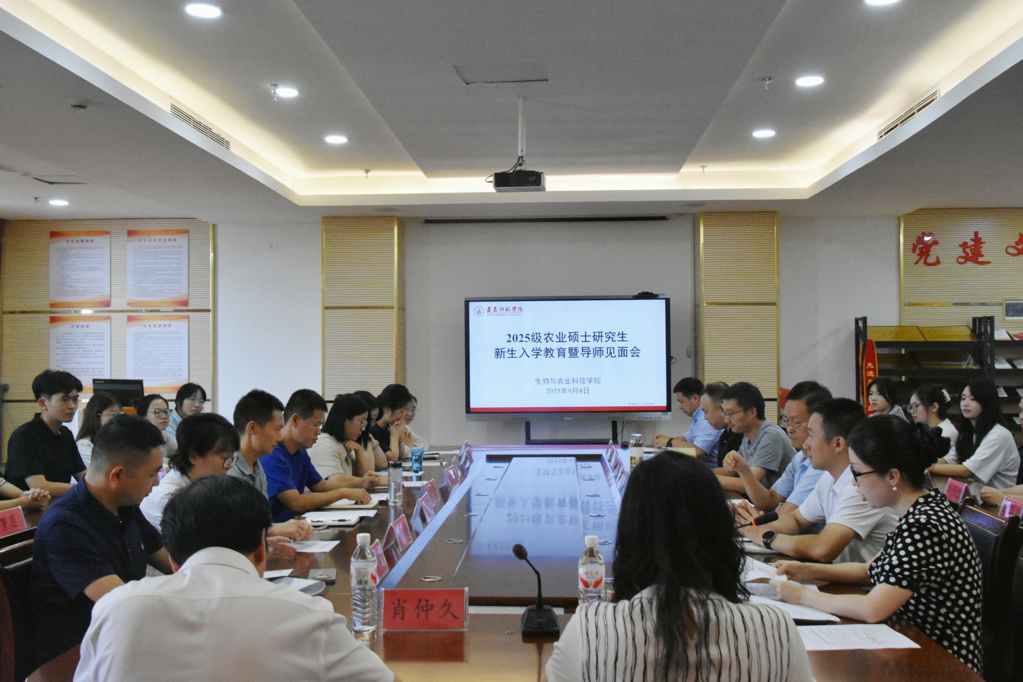 全体硕士研究生导师,生物与农业科技学院班子和各科室负责人以及2025级全体硕士研究生参加会议。会议由生物与农业科技学院党总支副书记方园主持。