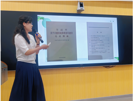 分享环节,五位来自不同二级单位的教师依次带来深度解读:《诗韵芳华:沙滩文脉中的才媛身影》婉约隽永,《习近平关于家庭家教家风建设论述摘编》发人深省,《攻坚路上》振奋人心,《辨“预制〈红楼〉”、品原著真味》妙趣横生。在舒缓的音乐萦绕中,分享者声情并茂,引领大家穿梭于字里行间,感受生活与社会的辽阔,触发关于家庭、情感、国家与人生的深刻共鸣。
