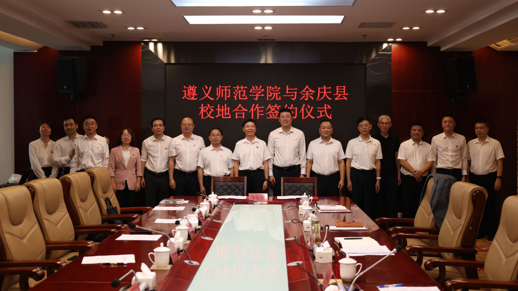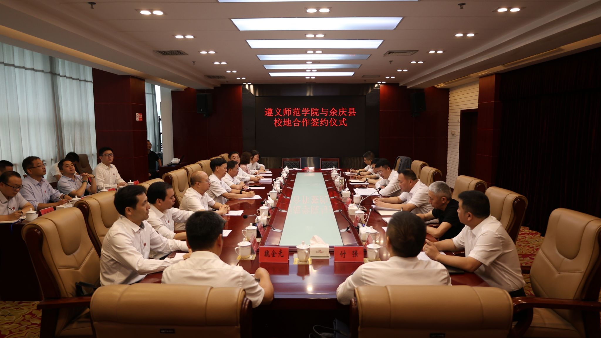 在与会领导的共同见证下,学校副校长张鹏与余庆县委常委、县人民政府副县长韦继军分别代表双方签署校地合作协议。