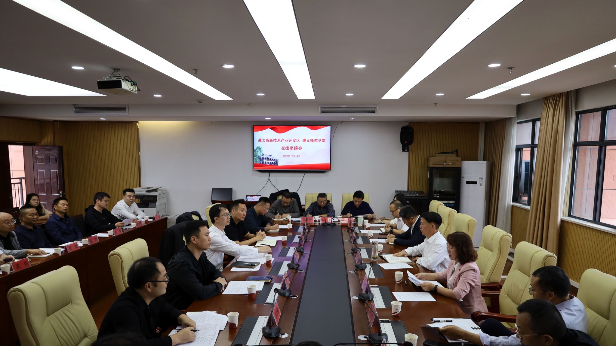 遵义高新技术产业开发区有关部门负责人、辖区内企业代表,welcome皇冠登录手机版有关部门、二级学院负责人参加座谈会。