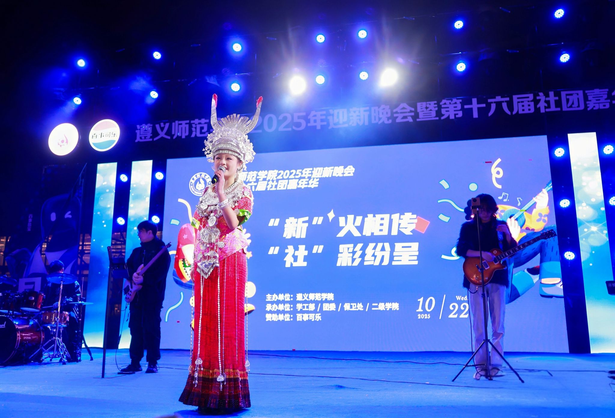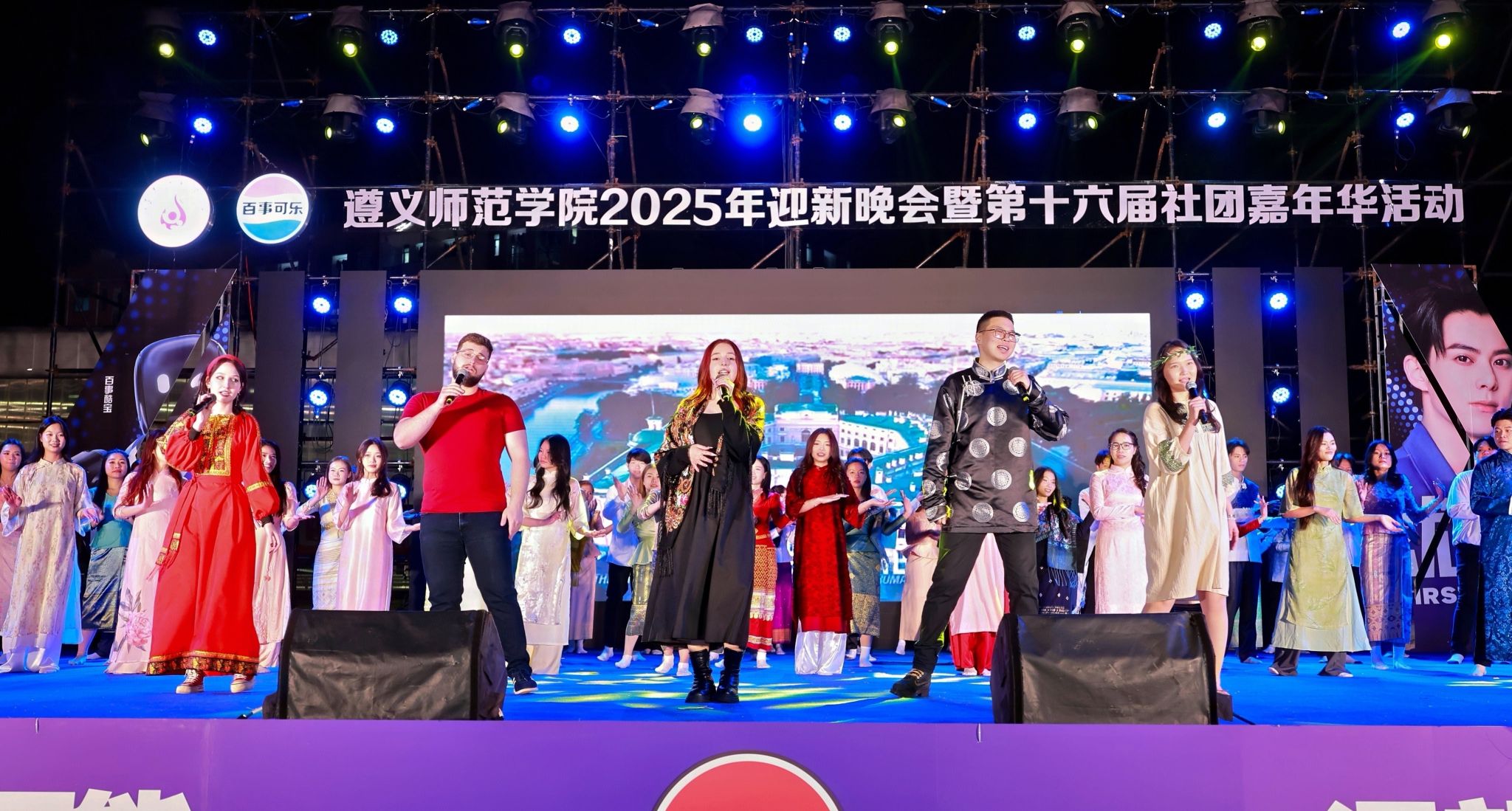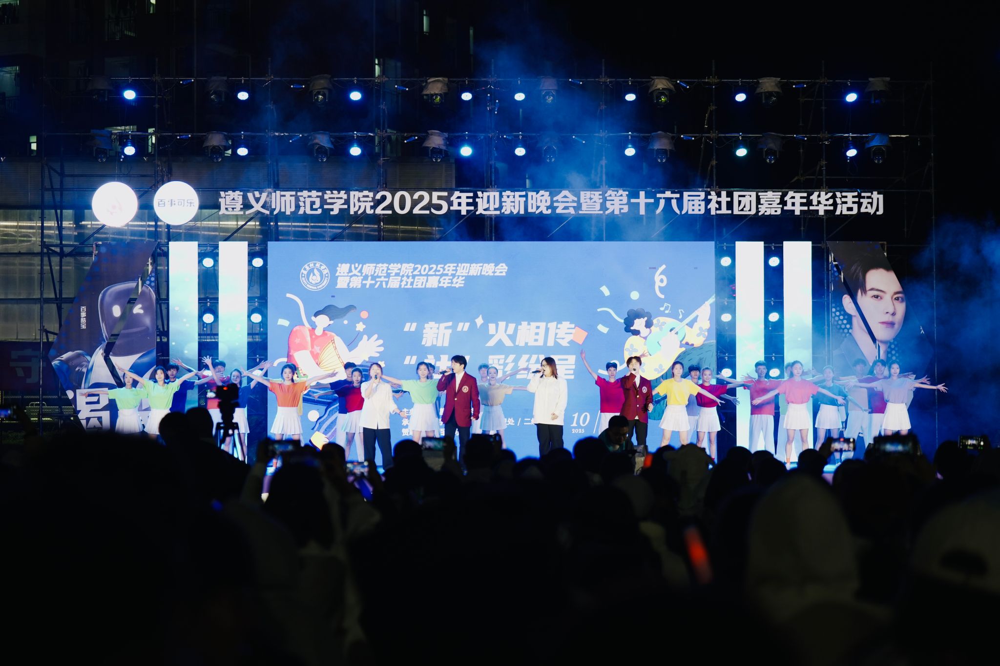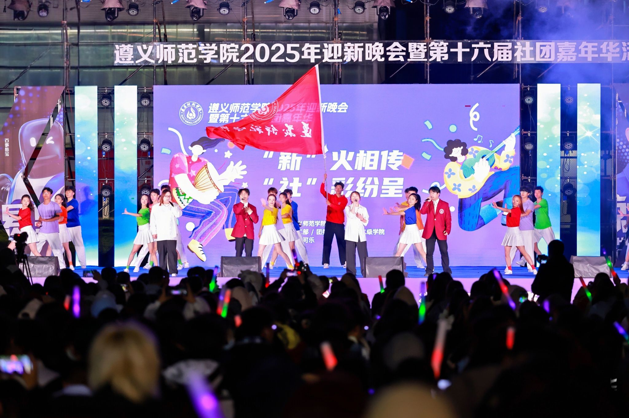 活动现场,星光与灯火交织,热情与活力共燃。遵师青年们以一场青春洋溢的视听盛宴,欢迎新同学的到来,开启他们在遵师的崭新篇章。整场晚会汇聚武术、汉服展演、环保时装、民乐新编、乐团摇滚、机器人混编街舞、留学生歌舞、研究生合唱等多元节目,既有传统文化的深情回望,也有青春潮流的激情碰撞。舞台上下星光点点,掌声如潮,展现遵师校园文化的蓬勃生机与无限创意。
