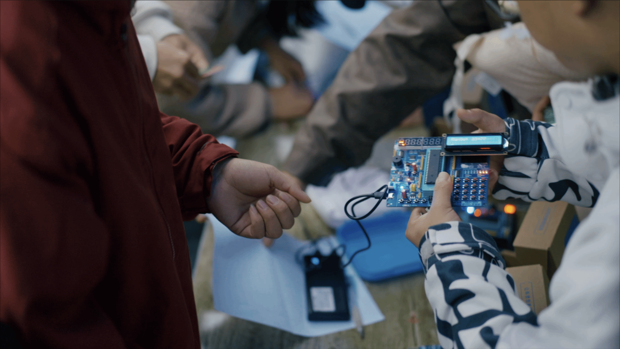 场外社团互动区同样热闹非凡。花卉协会的雅致插花让人驻足欣赏,羽毛球协会的手工编织挂件精致可爱,美食爱好者协会的鲜辣凉粉令人垂涎,人工智能与机器人协会以仿人、多足异形机器人吸睛,操控讲解与舞蹈接力趣味满格;土木工程协会玩转前沿科技,BIM技术、3D打印……同学们在体验中收获快乐,在互动中感受校园文化的多元与包容。
