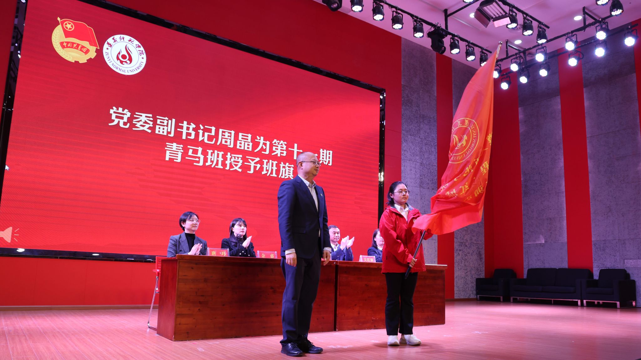 学校党委副书记周晶为第十一期青马班授旗,并以“青春列阵 强国有我”为主题,为全体学员讲授开班第一课。他以九三阅兵为引,结合学校培养具有“忠诚、坚韧、担当”遵师“红心”特质的有为青年标准,向全体学员提出三点希望:一是锚定理想坐标,将“小我”融入“大我”,树立服务国家、贡献社会的远大志向;二是锤炼过硬本领,通过扎实学习和不断实践,锻造迎接未来挑战的坚韧气质;三是奔赴时代需要,以勇于奉献的精神在祖国和人民最需要的地方展现青春担当。