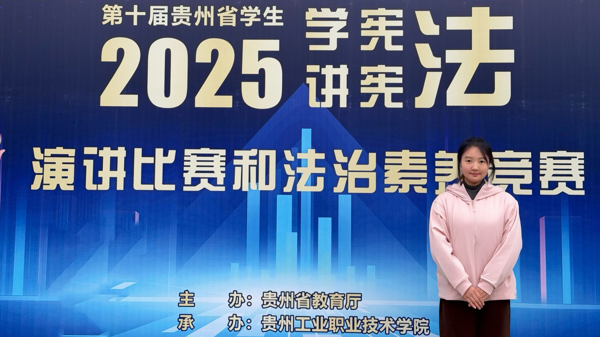 本网讯(团委) 11月1日,由贵州省教育厅主办的第十届全省学生“学宪法 讲宪法”活动省级决赛在贵州工业职业技术学院落下帷幕。welcome皇冠登录手机版选派的两名选手发挥出色,人文与传媒学院2023级播音班学生朱兆麟、马克思主义学院2023级思政长征班学生陈文星分别在演讲比赛、法治素养竞赛中获二等奖,充分展示了法治教育的育人成果。