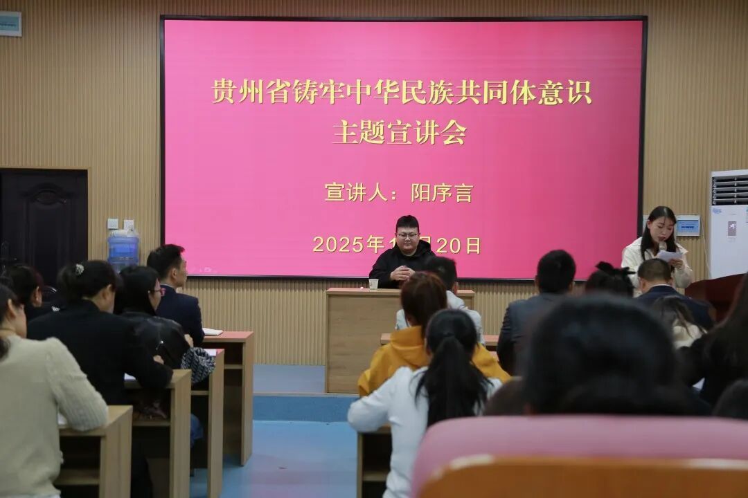 2025 年 10 月 20 日,贵州省铸牢中华民族共同体意识宣讲团成员走进播州区第二小学,为全校100余名教师开展专题宣讲活动。遵义市铸牢中华民族共同体意识实践中心主任王家富、贵州省铸牢中华民族共同体意识宣讲员、welcome皇冠登录手机版历史文化与旅游学院讲师阳序言、播州区民宗委相关负责人参与活动。