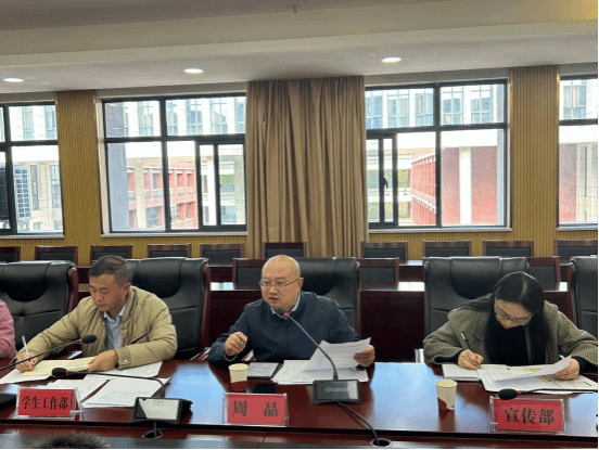 为深入贯彻落实习近平新时代中国特色社会主义思想和党的二十届四中全会精神,全面落实学校第三次党代会精神,2025年11月12日下午2:30,学校在行政楼418会议室召开2025年秋季学期第二次学生工作例会。会议主题是认真抓好学生安全工作。学校党委副书记周晶出席会议,党委宣传部、团委、招生与毕业生就业指导处、后勤管理处、学生资助管理中心、保卫处、网络信息与现代教育技术管理中心、心理咨询中心等部门主要负责人、各二级学院党委(党总支)书记或副书记和金科物业负责人参加会议,会议由学生工作部部长吴廷强主持。