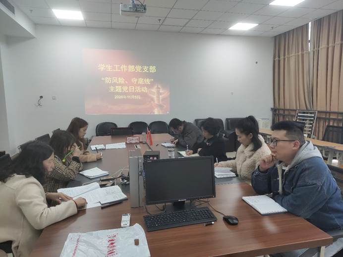在开展“防风险、守底线”主题党日活动过程中,学生工作部党支部按照要求,认真组织各个环节的工作。