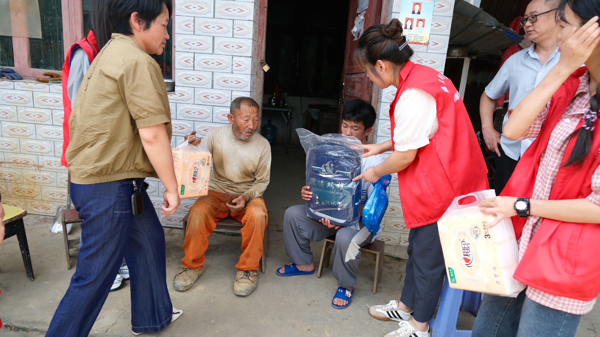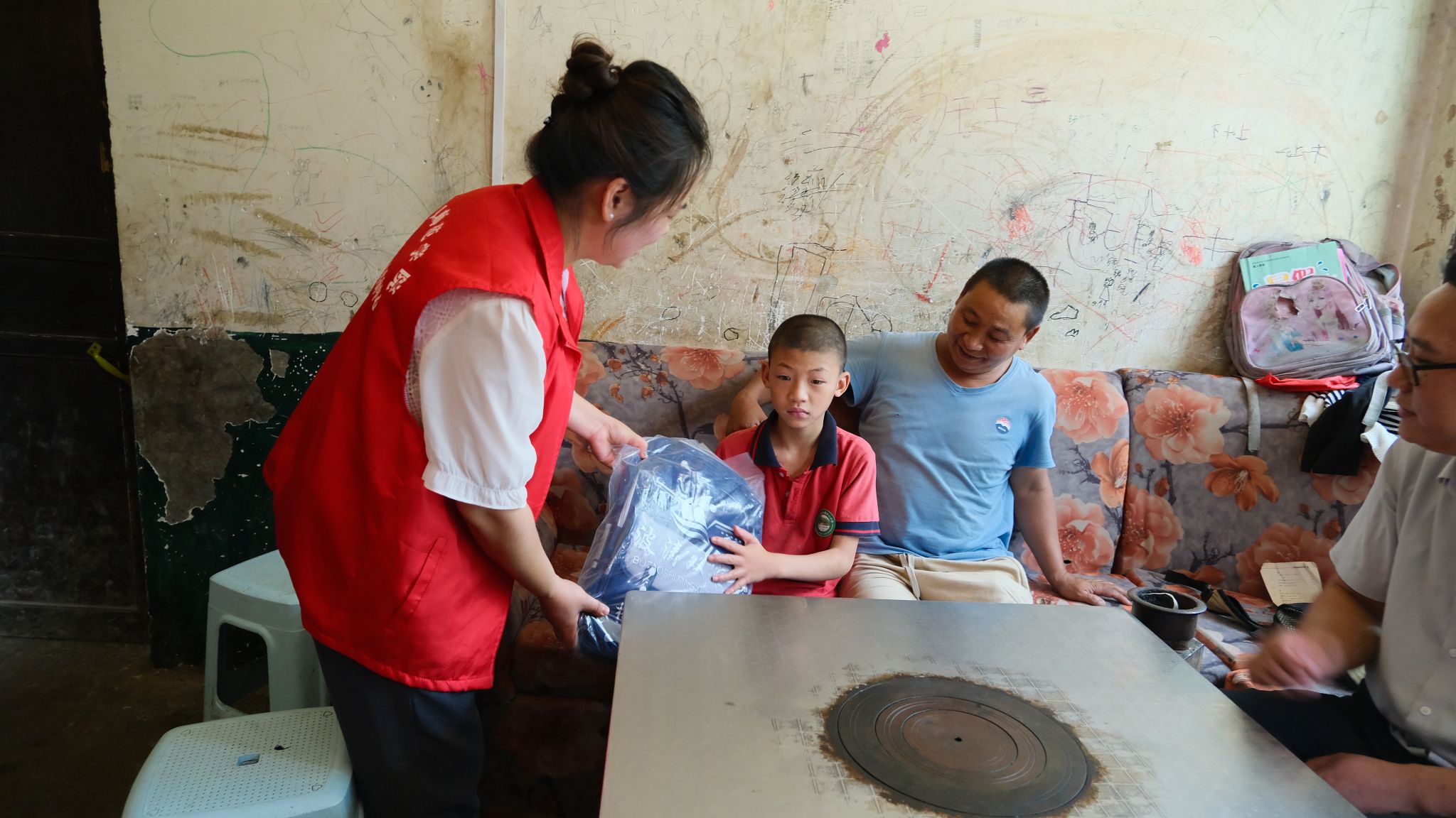走访慰问暖人心。志愿服务队非常关心困境儿童的成长。志愿服务团队在当地工作人员的带领下对当地4户困境儿童家庭进行实地走访慰问。走访过程中,工作人员向志愿服务队介绍了这4户困境儿童的家庭情况以及政府给予的帮扶措施。志愿服务团队深入困境儿童家中,耐心询问孩子们的学习、生活情况以及身心健康状况。志愿者们亲切的话语、亲和的态度让孩子们感受到了关注和温暖。志愿者向孩子们赠送了书包、文具等慰问品,并向困境儿童家庭发放了慰问金。志愿者们鼓励孩子们要勤于锻炼和劳动,要好好学习,长大后才能成为一个对社会有用的人。志愿者们表达了对孩子们的美好祝愿和深切希望。