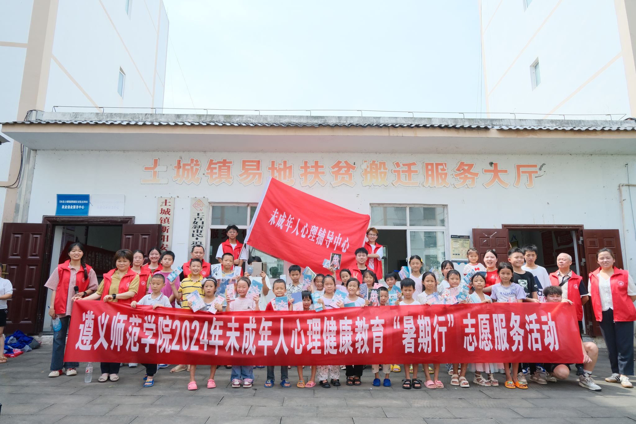 2024年7月12日--16日,遵义市未成年人心理辅导中心、遵义市未成年人心理健康教育协会组建welcome皇冠登录手机版未成年人心理健康教育2024年“暑期行”志愿服务团队,深入习水县土城镇黄金湾村新阳易地扶贫搬迁安置点、东皇街道红城社区、桑木镇银厂村等地开展关爱留守儿童系列志愿服务活动。本次活动由心理健康与咨询中心的周云、宋晓华、李仕卫、宋娇等四位老师带队,中心八名志愿者同学共同参与。